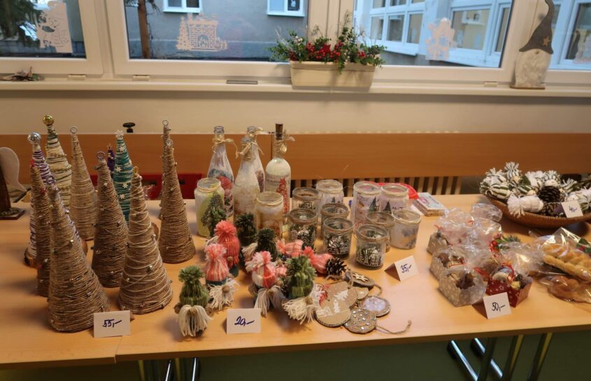 Ve středu 10. prosince se v naší škole uskutečnil tradiční Vánoční jarmark, na který se všichni žáci, učitelé i rodiče pilně připravovali již několik týdnů dopředu. Škola se proměnila v kouzelné místo plné světýlek, vůně cukroví a zvuků koled. Každá třída si připravila své vlastní prodejní místo – někde se prodávaly zdobené perníčky či svícny, jinde ručně vyráběné ozdoby, drobné dárky, přáníčka nebo textilní dekorace a adventní věnce.